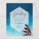 Striking watercolor sailing boat nautical ocean sea themed wedding invitation.