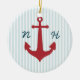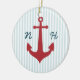 Keepsake ornament coordinating with my Nautical wedding suite. Red anchor on a blue and white striped background.