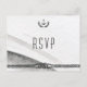 Nautical wedding RSVP postcards with black anchor and customizable black text, printed on grey and white background