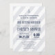 Nautical wedding shower invitations with a stylish navy blue and pale blue striped boat anchor design. Customize with your own nautical wording.