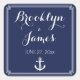 Nautical wedding stickers with white frame, white anchor and custom white text printed on navy blue background