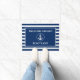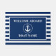 Nautical Welcome Aboard Anchor Rope Navy Blue and White Stripes Your Boat Name Door Mat