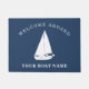 Nautical Navy Blue Welcome Aboard Personalized Boat Name Doormat