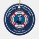 Celebrate the holidays with your canine sailing partner and best friend with this nautical theme Christmas ornament featuring a red and white life preserver, sailor’s rope, and a sailor dog on a navy blue background. This design is modern and minimalist, and it will make a fun addition to your holiday decor. Customize the “happy howlidays” and “welcome aboard” text and the four text areas on the life preserver to fit your needs.