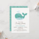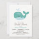 Nautical Whale bridal shower invitation. Invite features teal green blue whale.