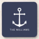 Nautical White Anchor and Custom Name on Navy Blue Coaster