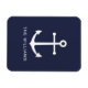Nautical White Anchor and Custom Name on Navy Blue Magnet