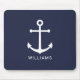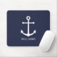 Nautical White Anchor and Custom Name on Navy Blue Mouse Pad
