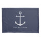 Modern Minimalist Nautical Pillow Case featuring white anchor with personalized name in white modern sans serif font style on navy blue background.