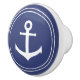 Nautical | White Anchor in Dark Blue Circle Ceramic Knob
