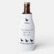 Personalized Nautical White Navy Blue Sandpipers Address bottle cooler| part of the ocean nautical themed decor soft navy Sandpipers Nautical designs perfect for coastal living, lake decor, river decor, and more. Design by Sandy Closs.