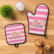 Nautical White Pink Stripes Gold Shells Oven Mitt & Pot Holder Set