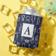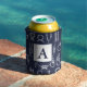 Nautical white rope knots and navy blue can cooler featuring your monogram letter.