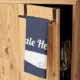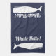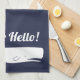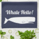 Cute nautical white whale silhouette kitchen towel with the phrase "Whale Hello".