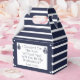 Perfectly classic navy and white seersucker striped I Couldn't Tie The Knot Without You, Will You Be My Bridesmaid favour box that is customizable with the Bride To Be name