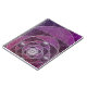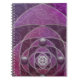 A stained-glass-like design of silver spirals and shades of plum, over a repeating backdrop of spiral fractals. The silver spirals converge into a silver rose design, with round gems for accents.