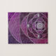 A stained-glass-like design of silver spirals and shades of plum, over a repeating backdrop of spiral fractals. The silver spirals converge into a silver rose design, with round gems for accents.