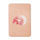 Digital sketch of a striped nautilus shell - coral orange and white shell against a pastel coral orange background bathmat
