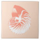 Digital sketch of a striped nautilus shell - coral orange and white shell against a pastel coral orange background