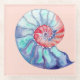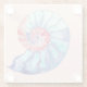 Nautilus Shell in Coral Blue Grey on Light Peach Glass Coaster