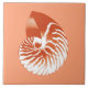 Digital sketch of a striped nautilus shell - deep terrracotta and white shell against a light terracotta background