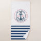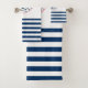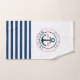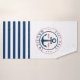 Cette image présente un nom de bateau et ancre sur un arrière - plan rayé bleu et blanc de la marine.