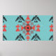 Navajo style ethnic ornament with birds and abstract geometric motif. Aztec tribal pattern, vintage illustration