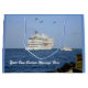 At Port Canaveral, Florida, an inbound charter boat passes by on the starboard side of the outbound cruise ship Navigator, as pelicans fly overhead.