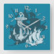 Navire pirate & Ancre Blanc Silhouette Horloge mur