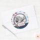 Couleurs nautiques en rouge, blanc et bleu classique avec ancre et crabes et une étiquette garçon de nouveauté avec autocollant photo de ficelle.