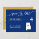 You chose a special place for your wedding. Now it's time to celebrate it with this keepsake save the date postcard, featuring a silhouette map and a tiny plane headed to your destination. To move the heart to the place of your wedding, click personalize and then "customize further.”