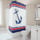 A navy anchor with red white and navy accent stripes make a great choice for the nautical bathroom.