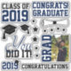 Create a cute scrapbook page for your graduate with this Navy and Black Photo Graduation Stickers. You can personalize this with the grad's photo and the class year in two spots. Phrases like 'You did it', 'Congrats! Graduate', 'Class of 2024', 'Grad' and 'Congratulations' are in black or navy text. It also features grad cap, diplomas and stars.