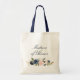 A lovely floral bride's tote bag with navy blue and pink blush roses and you can personalize the text and colours.
