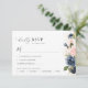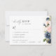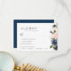 Wedding Rsvp card with black script and watercolor navy blue and blush flowers.