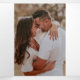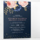 Display all the details of your wedding with this elegant tri-fold 3 in 1 wedding invitation featuring stunning watercolor blush pink and midnight blue florals on a pretty navy background and faux gold foil foliage and heart confetti, making this perfect for spring and summer weddings. It includes a photo of the happy couple, and wedding invitation. Guests can easily cut away the RSVP postcard and place in the mail! Easily edit all of the information with your wedding details using the template provided.
