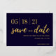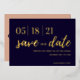 spread the news of your wedding date with this classy navy and blush pink save the date card. with a modern combination of bold type with script font this is on trend but also timeless