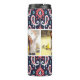Custom monogrammed thermal tumbler personalized with your family photos and text. This cute preppy design has an ikat paisley patterned background in navy, coral and turquoise colours with a custom 3 photo collage template. Add your name monogram or other custom text. Use the design tools to edit the text fonts and colours or add more photos to create a one of a kind design.