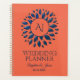 Simple, modern, contemporary, trendy living coral and navy blue wedding planner book with initials of bride and groom.