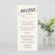 Place these elegant menu cards at each place setting for a beautiful touch to your event setup. Chic design features a modern calligraphy header on a soft cream ivory background with deep midnight navy blue lettering.