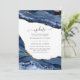 Navy blue and faux gold glitter agate stone postponed wedding announcement with elegant handwriting typography customizable to your specifics.