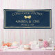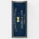 A Navy and Gold Elegant Wedding Congratulations Banner for your Reception Accessories designed with gold coloured text, borders and decorative hearts on a classic navy background. To personalize with the Bride & Groom's Names and Wedding Date, simply insert your text into our easy template, replacing the sample. Be sure to view the complete Navy and Gold Elegant Wedding Collection for matching stationery and accessories.