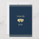 A Navy and Gold Elegant Wedding Invitation designed with Gold coloured text on a dark Navy background. The text includes: The Bride and Groom's Names, Wedding Date, Time, Location, Address and Reception Note. To personalize, simply insert your details into our easy template, replacing the sample text. Be sure to view the complete Navy and Gold Elegant Wedding collection for matching cards and accessories.