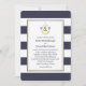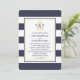 Designed for a nautical themed wedding, this invitation features navy and white stripes with a gold anchor and the bride and groom's monogram. Edit the sample text with your wedding details. You can add or remove lines of text as needed to suit your style and personal preferences.
