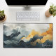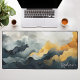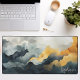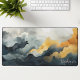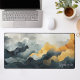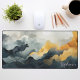 Elevate your workspace with this stunning watercolor abstract desk mat. The design features a dramatic, flowing landscape of deep navy, slate grey, and golden mustard tones, accented by delicate gold glitter veins that add a touch of luxury. A personalized name is elegantly displayed in a white script font in the lower corner, creating a professional and artistic focal point for your office or home study. This high-quality, durable mat provides a smooth surface for your mouse and keyboard while protecting your desk. With its sophisticated colour palette and modern aesthetic, this desk accessory brings a refined, artistic flair to your daily routine, making it a perfect gift for yourself or a stylish coworker.