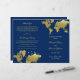 A luxurious gold foil-style world map glows against a rich navy background on this striking ceremony program for travel-loving couples and destination weddings. "Marriage Ceremony Uniting" introduces your names in elegant script beneath the gilded map, with gold splatter accents adding artistic depth. Inside pages are fully customizable for your bridal party, ceremony order, and a personal thank you message on the back cover. Programs are printed on text-weight paper and arrive flat, requiring a simple centre fold.