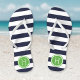Navy and Green Preppy Stripes Monogram Flip Flops