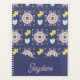 This spiral-bound notebook has a bold mix of hand-drawn florals and geometric shapes in the form of squares on a deep blue background. There are soft pastel yellow flowers among the geometric shapes. The name section is customizable in soft cursive, making it perfect for school, journaling, or gifting. Stylish, personal, and ready to inspire your notes.