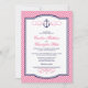 Preppy modern wedding invitation design with a nautical anchor graphic and elegant calligraphy scroll flourishes on a trendy diagonal stripe pattern background. Click the CUSTOMIZE IT button to customize fonts, move text around and create your own unique one-of-a-kind invitation design.