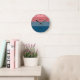 Navy and Red Wide Abstract Stripes Personalized Round Clock
